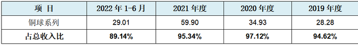 作为发行人第一大也是唯一核心业务的电镀用磷铜球业务,报告期初就将近30亿销售额起步,也是发行人冲主板市场的最重要筹码,其报告期内收入和占总营收比例见下表: