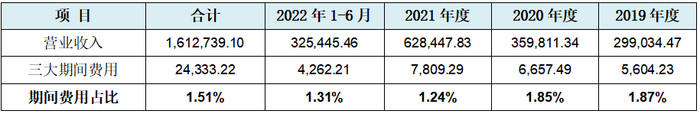 从上表我们可以看到,发行人报告期内的三大期间费用合计平均仅为1.51%,这是什么概念?不好意思,这已经超出财务人员概念范畴。而且这还是包含了平均研发费用占收入0.34%,如果考虑研发支出占比,2021年度发行人的三大期间费用占比低至0.93%,距地平线下仅一锹土距离。