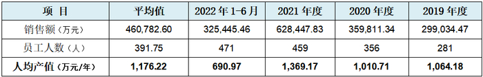 发行人如此高的销售额,而发行人又是生产企业,发行人的人均产值就首先爆掉了。我们整理出发行人的人均年产值情况,如下表所示:
