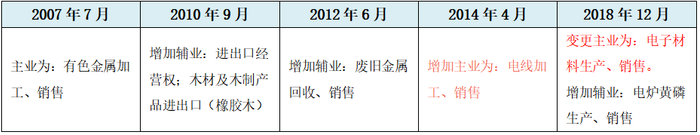 如果说铜球业务是发行人报告期内的新业务,那大家可能就会好奇那发行人的原来的旧主业是啥?估值之家就告诉大家,发行人报告期初的前三年,也即2014年-2018年其主业是做电线的,甚至是收旧铜的,你信吗?至于为啥,因为发行人营业执照上的主要经营项目在2018年12末才从电线加工、销售变更成电子材料生产、销售。我们整理出发行人的经营范围变更情况,具体见下表: