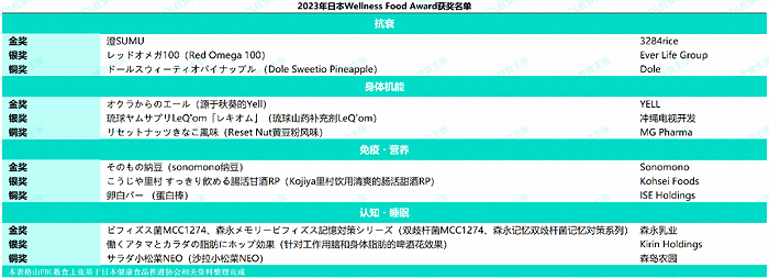 就在今年8月,以“通过促进以食品(健康食品)为基础的健康产业及市场形成和发展,延长国民的健康寿命”为宗旨的日本健康食品推进协会举行了第六届Wellness Food Award Japan的评审,并最终获奖名单。