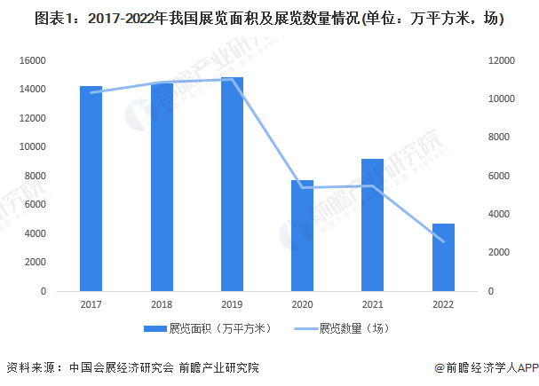 根据中国会展经济研究会披露的信息,受新冠疫情影响,2020-2022年我国举行线下展览的场次和面积与疫情前相比出现大幅降低。2022年,我国举行线下展览共2575场,展览总面积为4721万平方米,分别同比下降了53.2%和48.6%,成为疫情以来的最低数据。
