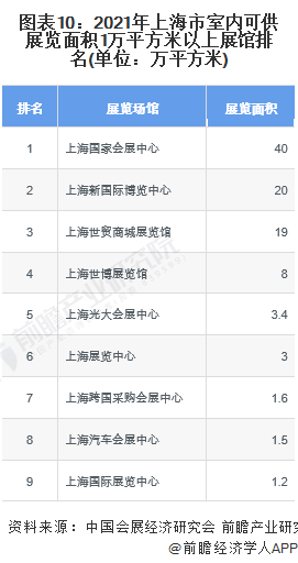 根据中国会展经济研究会披露的信息,2021年上海市的展览面积为1086.02万平方米、占全国比重11.83%,展览平均面积达到2.00万平方米,全国城市排名第一。从展览场馆数量的角度来看,上海市共有8座场馆、全国城市排名第二。全国共有259家场馆的室内展览面积超过1万平方米,上海有9家,其中上海国家会展中心的展览面积达到40万平方米、位列全国第二。