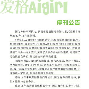 因为种种不可抗力,我们在此遗憾地告知大家:《爱格》将从2023年11月起停刊。