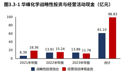 华峰化学2023半年报战略投资资金流出13.89亿元,较2022半年报减少260.95万元,增速-0.19%,战略性投资的资金投入基本稳定。