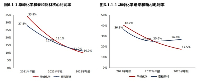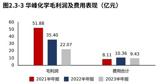 2023半年报华峰化学净利润13.60亿元,与2022半年报相比,净利润快速下滑。净利润的减少主要由毛利润的减少导致。