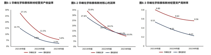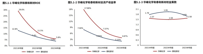 2023半年报华峰化学ROE5.79%,较2022半年报减少5.70个百分点,股东回报水平降低,需要从杠杆、周转率和盈利性角度分析股东回报下降原因,并进行决策和管理的改善。总资产报酬率3.87%,较2022半年报减少3.70个百分点,总资产回报水平降低,经营资产周转率和盈利性都有所恶化。权益乘数1.58倍,较2022半年报提高0.08倍,股东权益撬动资产的能力基本稳定。