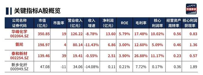 华峰化学营收规模以及净利润规模在行业内具有明显“体量”优势。