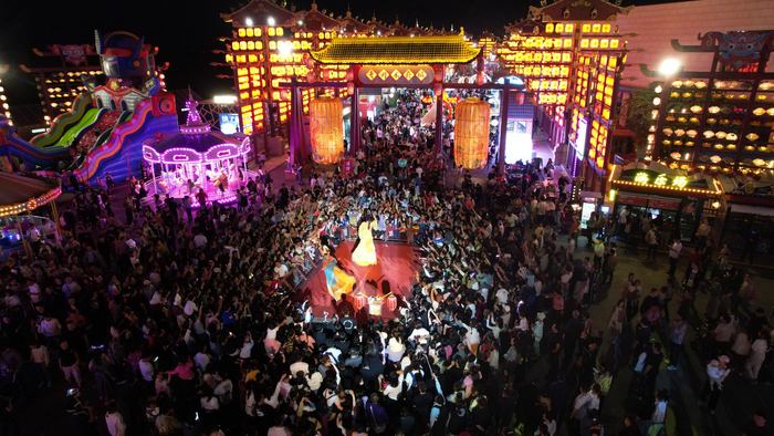 青州不夜城是青州市新崛起的一大夜间旅游“顶流”。夜晚,景区内3000盏光束激光灯发射出五光十色的光线,2万多个国风灯笼如星光闪闪,将景区装扮得多姿多彩。今年,景区还推出了精美的国潮演出、刺激的魔法表演、精彩的武文大舞台等夜间文旅活动,景区人流量持续暴增,单日最高接待游客达3万人次。