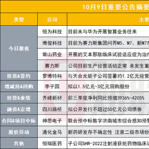 常山药业披露股票交易异常波动公告,公司开展的艾本那肽临床试验,适应症为治疗2型糖尿病,不涉及肥胖适应症。公司艾本那肽注射液尚未上市销售。艾本那肽是公司控股子公司常山凯捷健为主体进行的研发注册,公司持有常山凯捷健51%股份,其净利润中由上市公司股东享有的份额为51%,由少数股东享有的份额为49%。常山凯捷健未来实现盈利后,公司不能享有其实现的全部净利润。公司股价自9月11日至10月9日累计涨幅达261.71%,敬请投资者注意投资风险。