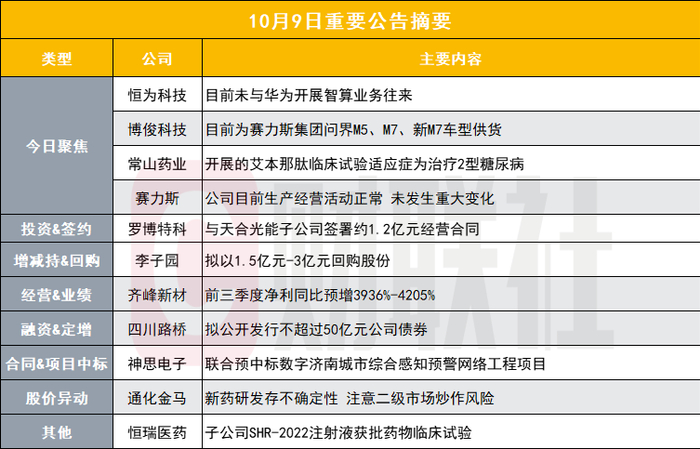 恒为科技披露股票交易风险提示公告,公司股票自9月18日至10月9日,近九个交易日收盘价格累计涨幅达到83.04%,股票价格偏离公司基本面较大,存在估值较高风险。公司目前未与华为开展智算业务往来。公司存在业绩下滑及部分董监高人员处于减持计划期间的风险,敬请广大投资者理性投资。
