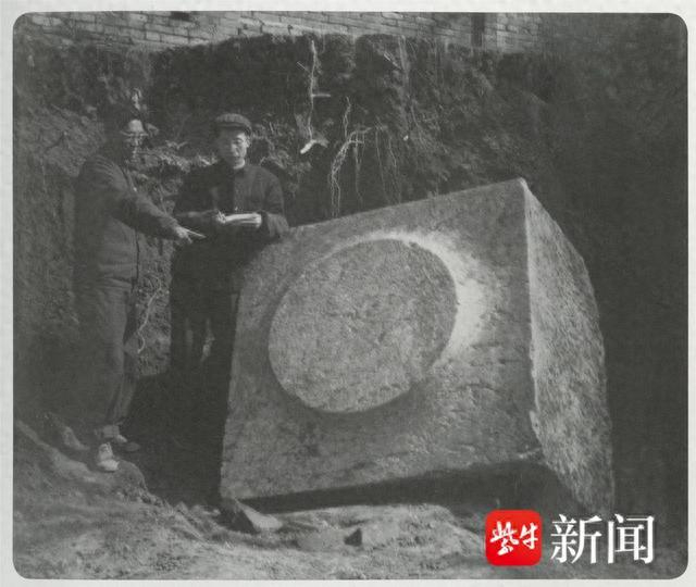 在南京人防工程通过南京大学北大楼西北时,发现1件1.4米见方的大石柱础压在古墓葬上。