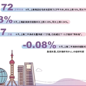 在成交方面,据中指研究院数据,9月,上海二手房成交量突破1.7万套,已经越过了1.5万套的“荣枯线”。整体来看,今年1-9月,上海二手商品房成交量超过15万套,同比增长20.7%。在房价方面,9月,上海二手房房价指数环比下跌0.08%。