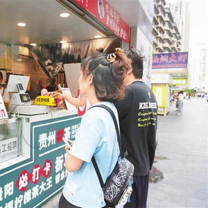 “这是我们的龙井茅奶,包装设计灵感来源于贵州的酱酒,茶底选自贵州绿茶制成的贵州龙井……”10月2日,熙熙攘攘的贵阳市青云路步行街,贵州井茶茶饮店的创始人张营尚向游客们介绍着自己的代表产品。