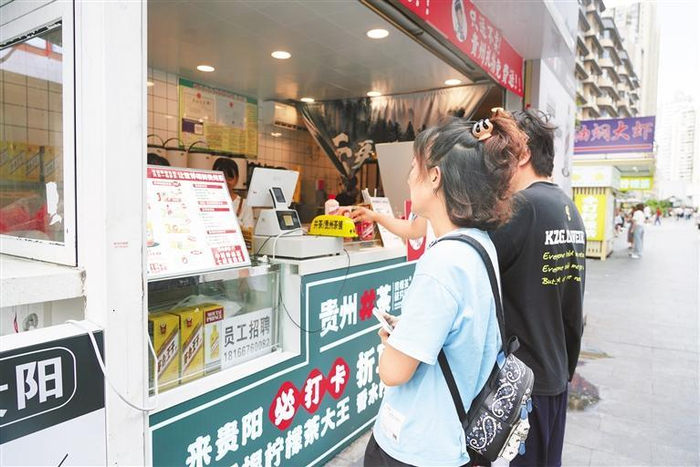 “我们用一瓶瓶特色茶饮,搭配贵州文化元素符号,力求实现让消费者‘一眼解贵州’。”张营尚透露“秘诀”道,目前,贵州井茶在青云路步行街和青云市集共设有2家店铺,不仅是“网红打卡点”,也成为省内外游客体验贵州文化的小站。