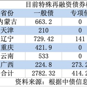 继内蒙古、天津之后,辽宁、重庆、云南、广西等省份也加入特殊再融资债券的发行行列。
