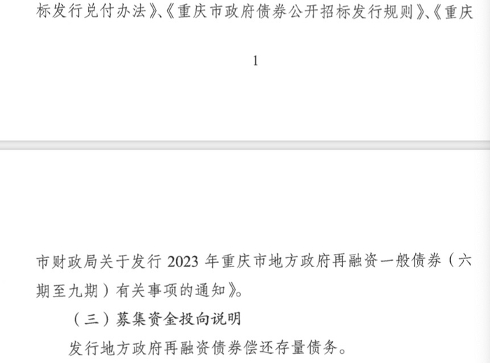 重庆市10月9日披露,拟在10月16日发行421.9亿再融资一般债。