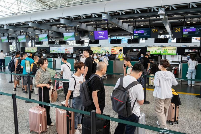 今年中秋国庆假期八天,白云机场客流呈现“进出两旺”态势,白云机场共起降航班1.12万架次,接送旅客162.36万人次,保障货邮4.87万吨,同比2022年分别增长49.79%、88.77%、25.70%,同比2019年分别增长4.94%、0.35%、28.82%。