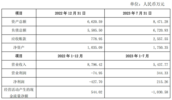 从上图可知,回龙2022年处于亏损状态。2023年1月到7月,该公司实现营收5438万元,实现净利润215万元。