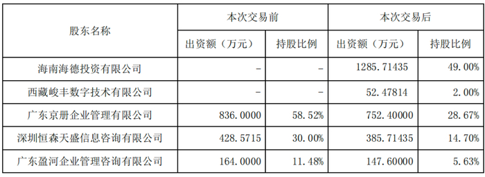 回龙,成立于2008年,实缴资本1000万,法定代表人舒达坤,社保参保人数113人(分支机构参保人数319人),此次收购前该公司最大股东方为陈秋100%控股的广州京册企业管理有限公司。回龙在北京、长沙、邵阳和重庆等等地方有66个存续的分支机构。此次收购后,海德股份旗下海南海德和西藏峻丰数字技术有限公司(简称“峻丰”)合计持股51%取得绝对控股地位。