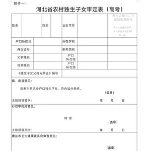 3.审核后的材料《河北省农村独生子女审定表》高考报名时提交。