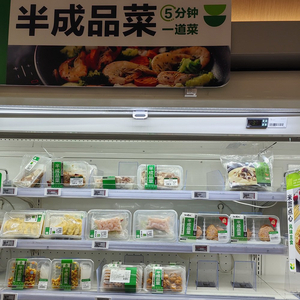在某大型超市,专门设置的半成品菜区域,近20种预制菜摆在货架上,其中多个菜品已售卖一空。“5分钟一道菜”“分分钟一桌菜”等宣传语突显出预制菜方便快捷的特点。不同品类的菜都摆在预制菜区域,但细看菜品执行标准也各有特点。