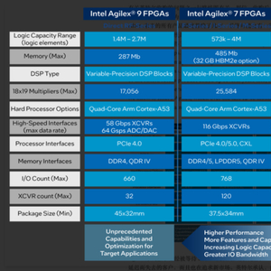同时,双方还探寻了英特尔早期异构Chiplet的技术和策略,包括使用EMIB封装(embedded multi-die interconnect bridge)和AIB(Advanced Interface Bus)总线技术。之后,英特尔 PSG 跳转到成功的 Agilex FPGA 系列,该系列最初采用英特尔 10 纳米工艺技术制造。最近,英特尔 PSG 一直在扩展 Agilex FPGA 系列产品组合,并似乎计划将 Agilex FPGA 架构从低端的Agilex 3 FPGA 再到上面的DirectRF Agilex 9 FPGA。