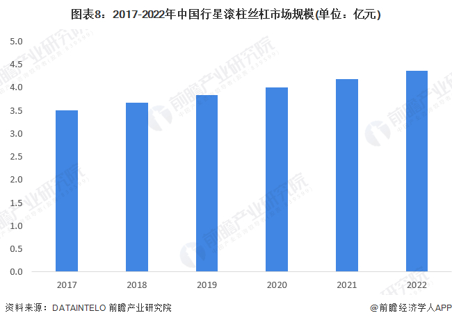 3、市场规模:2022年我国行星滚柱丝杠市场规模约为4.4亿元