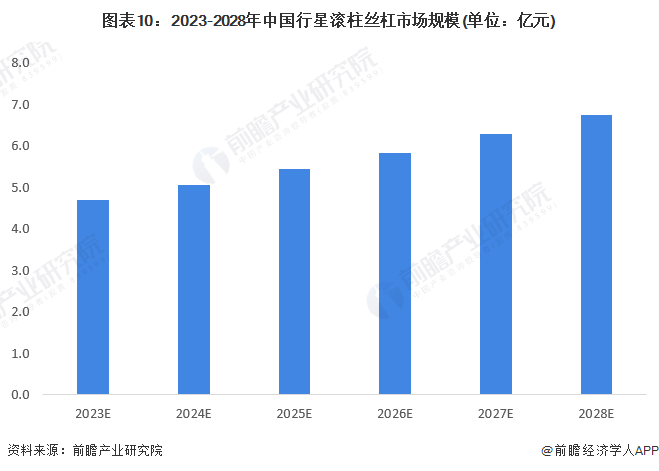 参考Persistence Market Research的数据,2023-2028年我国行星滚柱丝杠行业市场将以7.5%的年复合增速扩大;结合DATAINTELO数据,预计2028年我国行星滚柱丝杠行业市场规模将达6.7亿元。