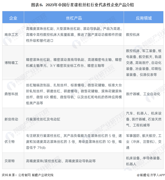 在行星滚柱丝杠产业链的参与者中,上游原材料厂商有太钢不锈、酒钢宏兴、久立特材、永兴材料等,零部件制造厂商有苏轴股份、丰禾支承、五洲新春、福立旺、明泰股份、晶品压塑等;中游行星滚柱丝杠制造商有南京工艺、博特精工、新剑传动、优士特等;下游应用领域客户包括特斯拉、傅利叶智能等多个领域的公司。