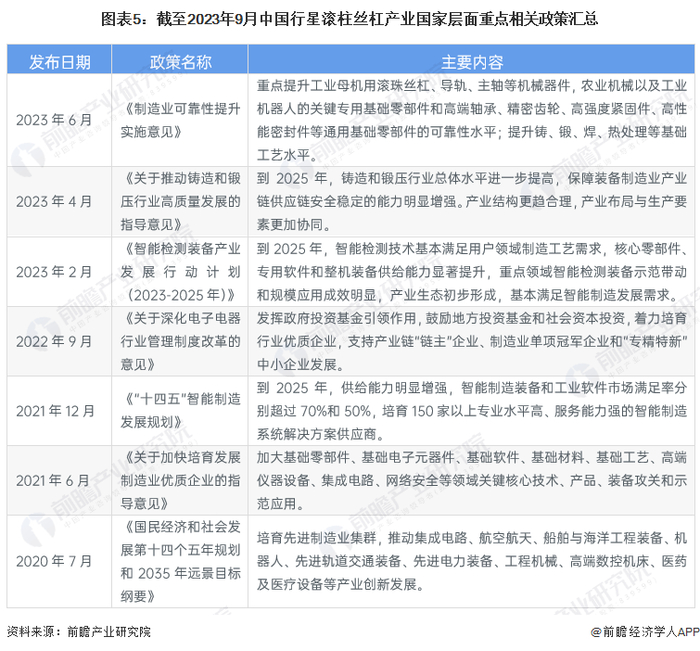 行业政策背景:促进高端制造业发展,利好行星滚柱丝杠行业