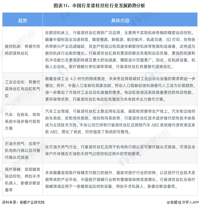 作为高端装备制造的重要组成部分,行星滚柱丝杠在智能制造装备、轨道交通装备、航空航天装备、汽车制造装备等多个子行业中广泛应用,其在精密传动领域的高性能和稳定性使其成为这些领域中不可或缺的关键元件。这些政策的推动,为行星滚柱丝杠行业的发展提供了有力支持。