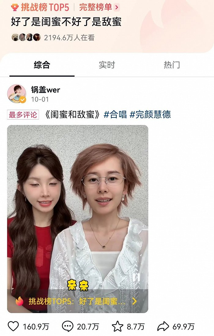 就像完颜慧德的口音与离谱的语言逻辑造就的“梗音乐”《闺蜜与敌蜜》,在诸多网友看来也不过是“笑料”,但“敌人的秘密就是敌蜜”这一啼笑皆非的创造性解释,却成为了其能够支撑起高频传播的关键点。