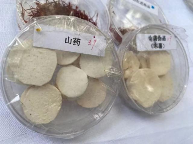 “药用山药鉴别起来很简单,真品能看到片剂上有一颗颗的黄点点,颜色偏白。伪品通常用木薯做成的,看不到黄点点,而且颜色偏黄。”真假药材辨别科普的柜台前围满了感兴趣的市民,药师把真品和伪品放在一起,一一告诉他们如何从细节处看出真品药材的特点。