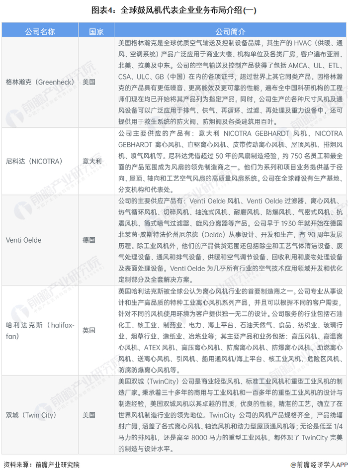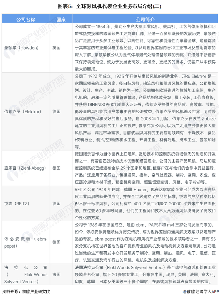——全球鼓风机代表企业较多 全球各国分布广泛