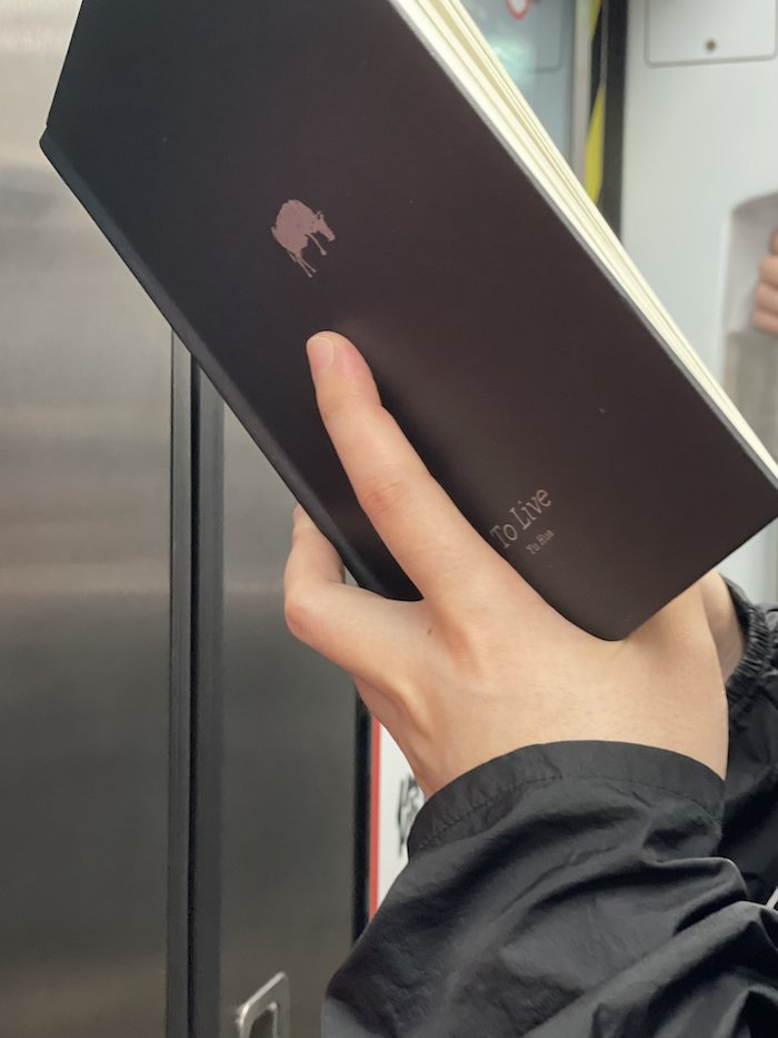 20230927。精装版《活着》,去掉了护封,也是遇到过的书了。今天换乘时还看到一个穿短袖的男青年在看厚厚的《周易》,没有拍下来。