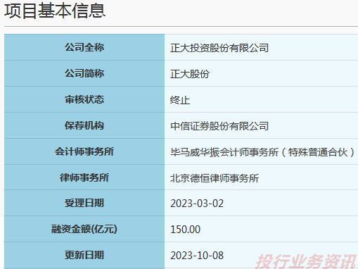 因正大投资股份有限公司及其保荐人撤回发行上市申请,上交所终止其发行上市审核。