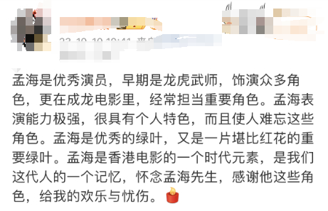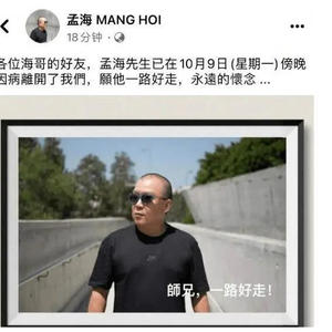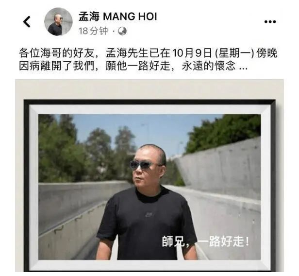 据报道,曾凭《皇家师姐》夺得第5届香港电影金像奖最佳男配角奖的香港著名演员孟海10日凌晨传出去世的消息,多位圈中人在社交平台发文悼念。
