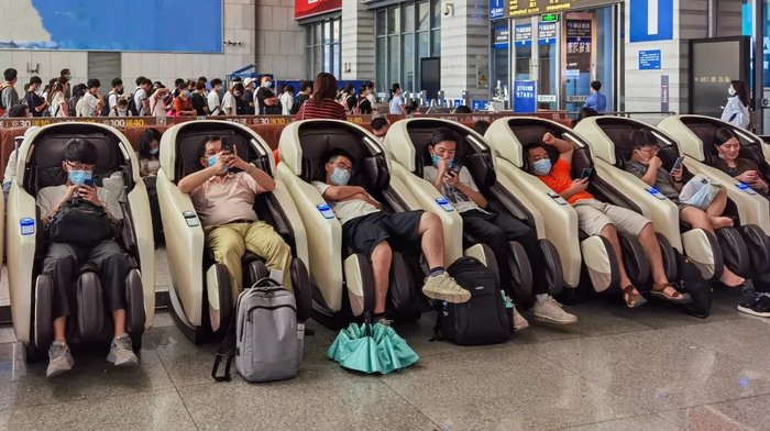 今年8月,山东泰安站由于按摩座椅占比过多登上热搜,被网友吐槽“居然有将近90%的座椅都是共享按摩椅”,“大家长”中国铁路官方不得不站出来公开批评教育,并要求全国各地火车站排查整改,占比不得超过20%。