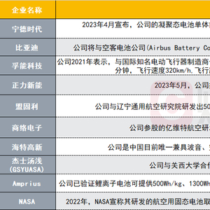 上市公司方面,据高工锂电,早在2019年就有外媒报道称,比亚迪将与空客电池公司(Airbus Battery CoC)密切合作,双方致力于为航空航天各类飞行器研发新型电池,但截至目前尚未更新最新进展。
