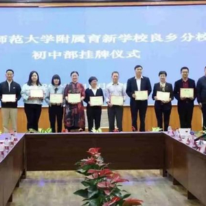随后,与会领导一同为首都师范大学附属育新学校良乡分校初中部揭牌。