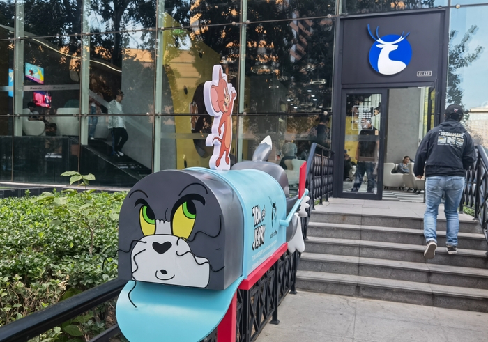 10月10日下午,走进位于左家庄街道新源南路的瑞幸咖啡“猫和老鼠”主题店,憨态可掬的汤姆、杰瑞藏身于窗户前、座椅旁、房顶上,不少年轻人正在打卡拍照。