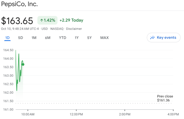 财报发布后,百事可乐美股开盘后涨超1.42%,至163.65美元