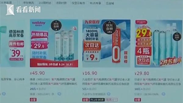 记者随后登录多家电商平台发现,有多个品牌的便携式氧气瓶在售卖,价格从十几元到几十元不等。多数产品标称“氧气纯度在99%以上,适合老人、孕妇、学生、白领等人群使用。”