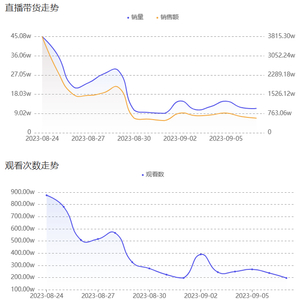 不止淘宝的李佳琦,从抖音发迹的“后辈”东方甄选同样面临流量下滑的问题。特别是在8月底入淘前后的半个月里,第三方数据平台“红人点集”数据显示,不管是带货销量、销售额还是观看次数,东方甄选直播间都呈现明显的下滑趋势。