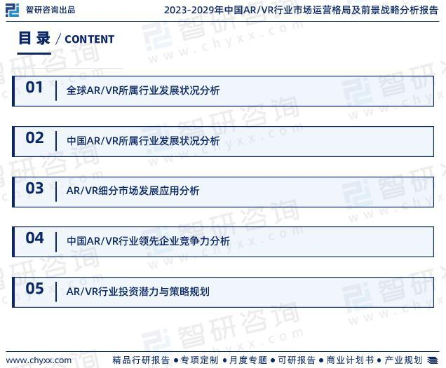 中国AR/VR行业市场运营格局及前景战略分析报告是智研咨询重要成果,是智研咨询引领行业变革、寄情行业、践行使命的有力体现,更是AR/VR领域从业者把脉行业不可或缺的重要工具。智研咨询已经形成一套完整、立体的智库体系,多年来服务政府、企业、金融机构等,提供科技、咨询、教育、生态、资本等服务。