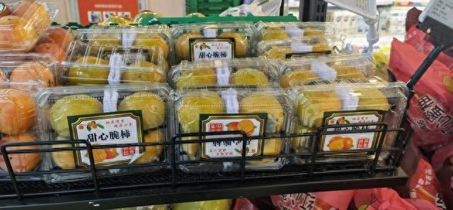 走进生鲜超市,柿子则以更方便拿取的盒装形式与消费者们见面。记者走访了盒马鲜生裕德路店、Ole’精品超市、清美鲜食南丹店这三家门店,发现售卖的柿子种类主要有陕西火罐柿和云南脆柿,价格在每盒6.9元~16.9元不等。
