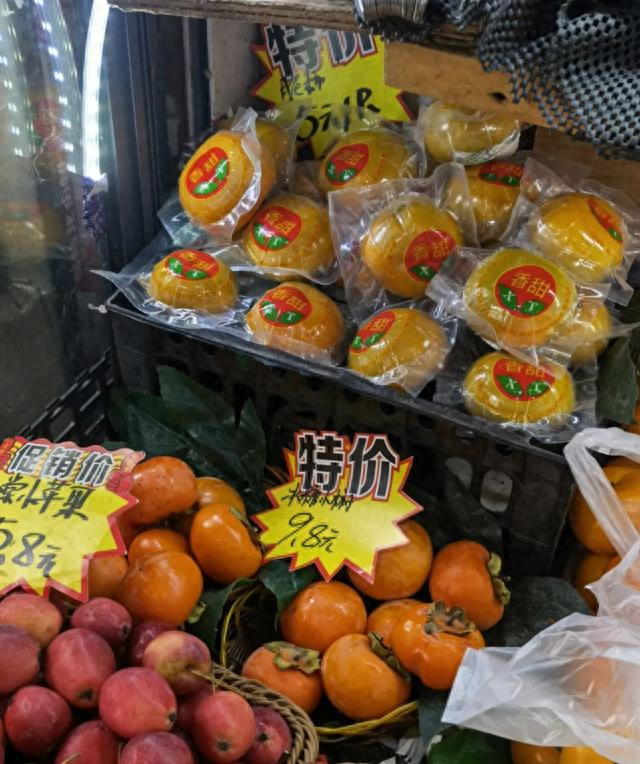 记者走访了徐汇区几家生鲜商店以及菜市场中的水果店,发现新鲜柿子都已上市,只不过包装方式略有不同。记者走访的几家水果店,仍然以散装称重的售卖方式为主,价格集中在5.8~9.8元/斤。同时,记者注意到相较往年,今年水果店中能够见到的柿子品种也有所增加,有冰糖小柿子、大红柿、脆柿等。
