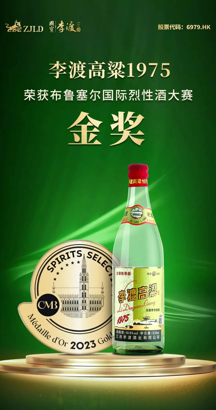 就在2023湾区酒商盛典举办当天,从意大利特雷维索传来喜讯,在第25届比利时布鲁塞尔国际烈性酒大奖赛上,“李渡高粱1975”荣获布鲁塞尔国际烈酒大赛“金奖”。