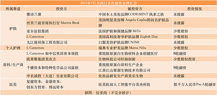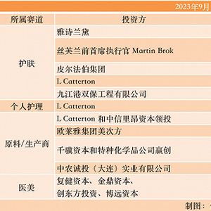 虽然美妆领域投融资整体遇冷,但在9月的投融资事件中,包括雅诗兰黛、LVMH、欧莱雅和皮尔法伯在内的国际美妆集团集体出手。
